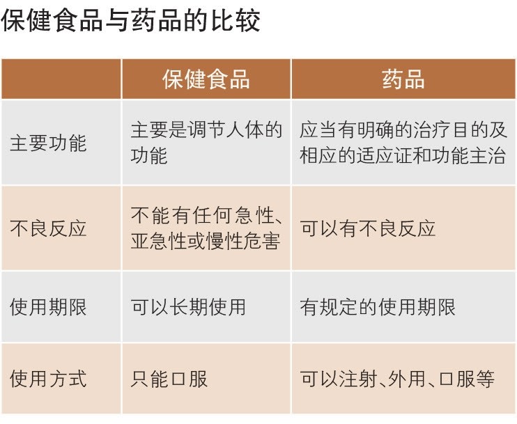 ?。?)保健食品與藥品的區(qū)別,請(qǐng)見(jiàn)下表。