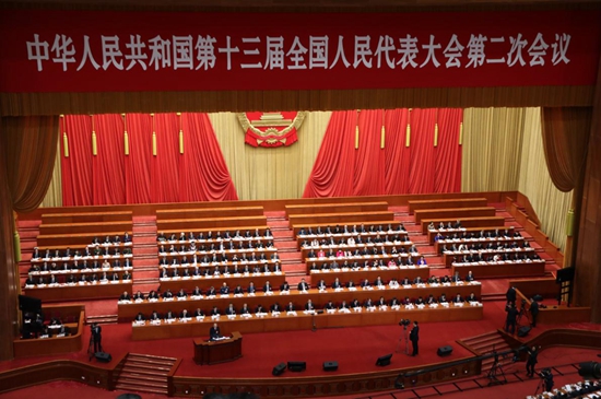 圖為十三屆全國人大二次會(huì)議全體會(huì)議現(xiàn)場。(中國食品藥品網(wǎng)記者落楠 攝)