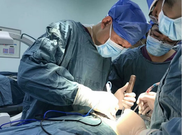 武漢市第一醫(yī)院脊柱外科專家正在進行手術(shù)。高陽 攝