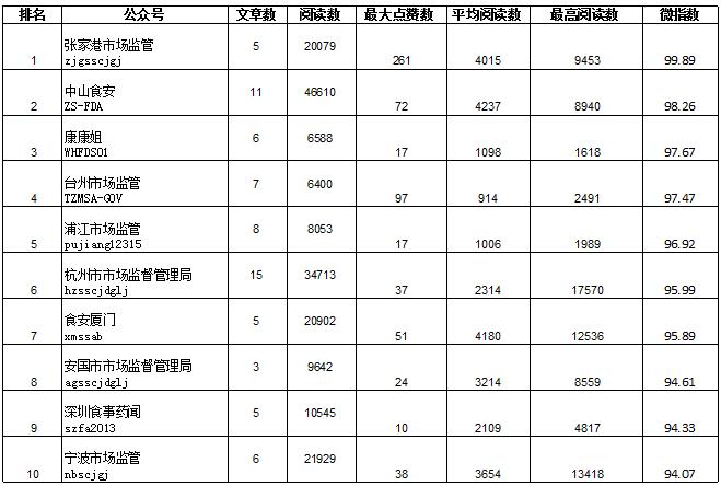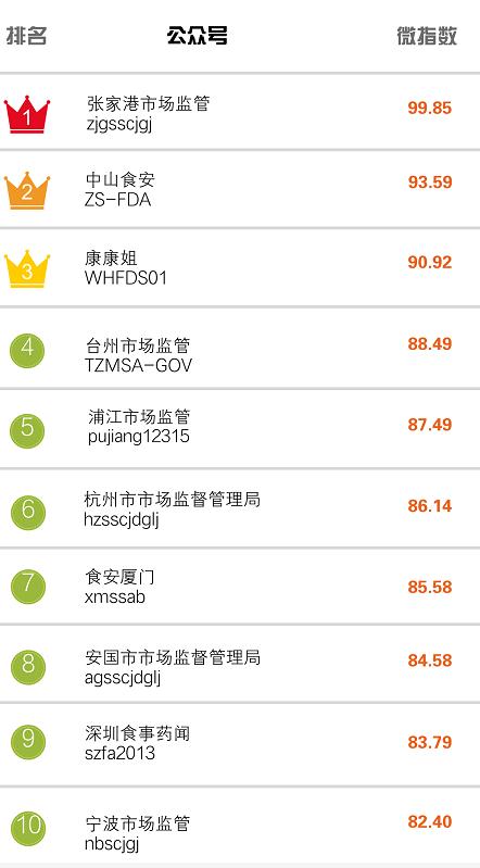 最新TOP10 | 食藥監(jiān)管部門政務(wù)微信排行榜