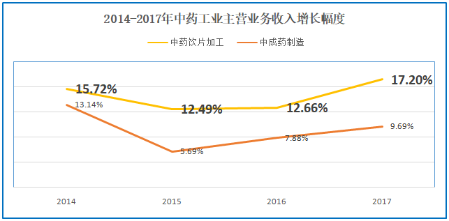 圖8 2014-2017年,中藥工業(yè)主營收入增長幅度(國家工信部發(fā)布)