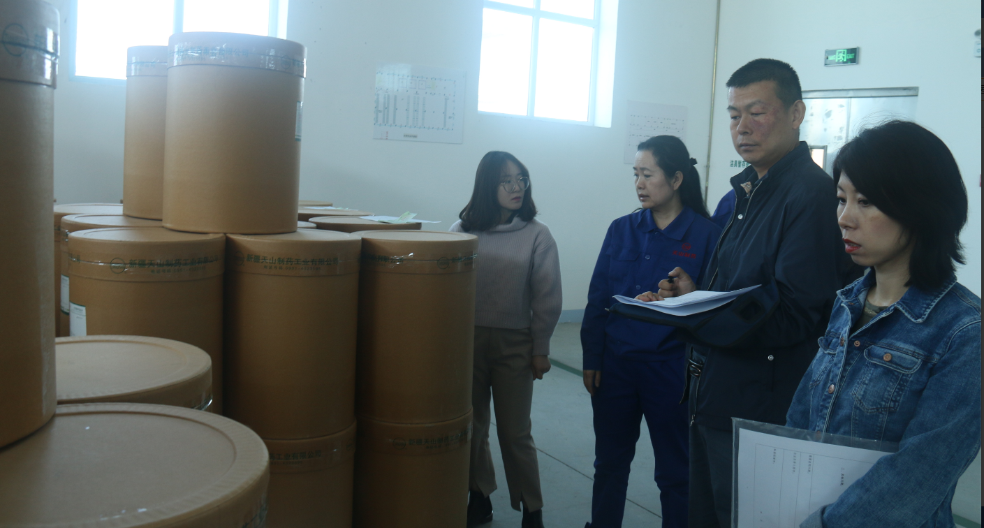 4月3日,新疆維吾爾自治區(qū)藥品監(jiān)督管理局檢查組在新疆天山制藥工業(yè)有限公司庫房檢查甘草酸單銨鹽的儲(chǔ)存條件,并對(duì)進(jìn)出庫記錄、庫房管理人員的在崗履職情況等方面進(jìn)行了檢查。(中國食品藥品網(wǎng) 記者付海紅 )