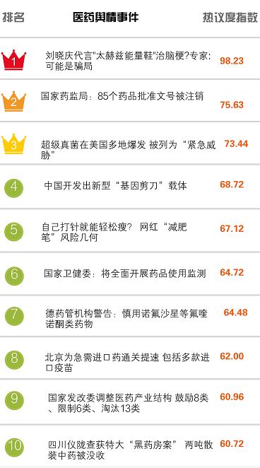 醫(yī)藥輿情排行榜|國家藥監(jiān)局:85個藥品批準(zhǔn)文號被注銷
