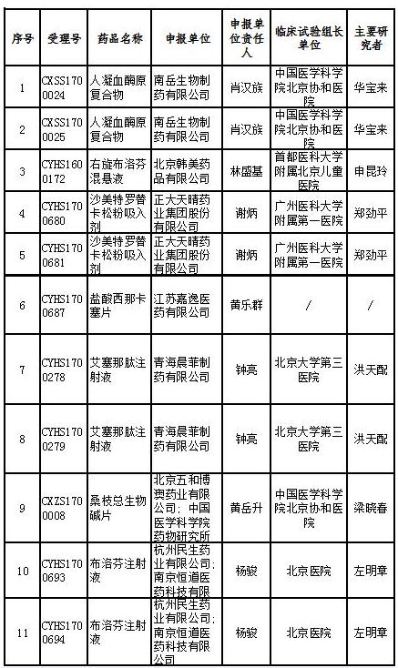 17個藥物臨床試驗數(shù)據(jù)現(xiàn)場核查注冊申請目錄