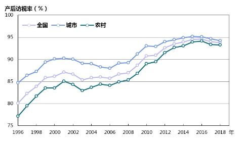 圖12 1996—2018年產(chǎn)后訪視率變化趨勢