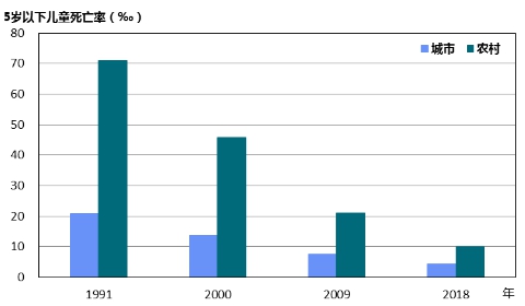 圖5 1991—2018年全國城鄉(xiāng)5歲以下兒童死亡率比較