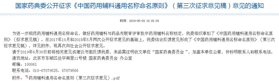 《中國藥用輔料通用名稱命名原則》第三次征求意見