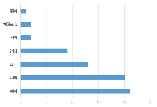 如圖6、圖7所示,83個熱點事件中,涉及防曬產(chǎn)品的有8個,如“資生堂緊急召回41萬瓶防曬霜 安耐曬也中招”“迪奧防曬霜錯標(biāo)致癌物二苯酮 實際未檢測出該成分”等。此外,面膜、口紅等產(chǎn)品也排在前列,如“浙江20歲小伙網(wǎng)購面膜治痘 全身冒出紅疹差點沒命”“舌尖3第四集現(xiàn)‘中藥口紅’被質(zhì)疑造假”等。有49個熱點事件涉及境外的化妝品品牌,如美國強生、日本資生堂等。