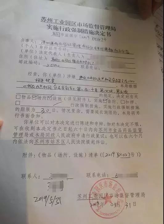 5月31日上午,蘇州市工業(yè)園區(qū)市場監(jiān)督管理局食品藥品安全稽查大隊執(zhí)法人員到喜茶圓融時代店檢查,發(fā)現(xiàn)店堂內(nèi)及操作臺上飛蟲很多,現(xiàn)場對該店開具了停業(yè)整改的通知書。同日蘇州喜茶永旺夢樂城店也被要求整改。