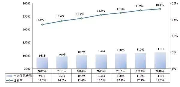 2012-2018年職工醫(yī)保次均住院費(fèi)用和住院率