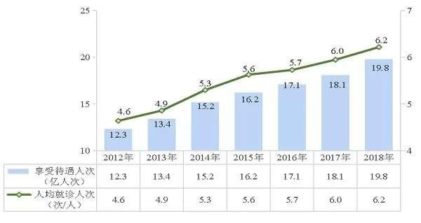 2012-2018年職工醫(yī)保享受待遇人次和人均待遇次數(shù)