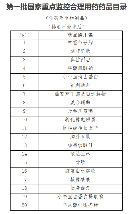首批重點監(jiān)控藥物目錄名單出爐,20種藥品入選
