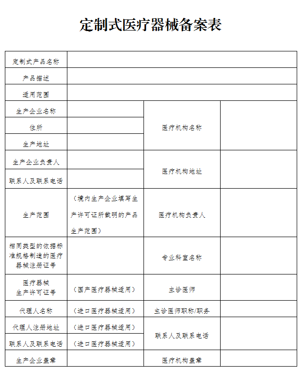 第八條 醫(yī)療器械生產(chǎn)企業(yè)及醫(yī)療機(jī)構(gòu)共同作為定制式醫(yī)療器械備案人,在生產(chǎn)、使用定制式醫(yī)療器械前應(yīng)當(dāng)向醫(yī)療器械生產(chǎn)企業(yè)所在地(進(jìn)口產(chǎn)品為代理人所在地)省、自治區(qū)、直轄市藥品監(jiān)督管理部門備案。備案資料符合形式要求的,省、自治區(qū)、直轄市藥品監(jiān)督管理部門當(dāng)場予以備案(見附1—3)。備案資料不齊全或者不符合規(guī)定形式的,應(yīng)當(dāng)一次告知需要補(bǔ)正的全部內(nèi)容。對不予備案的,應(yīng)當(dāng)告知備案人并說明理由。