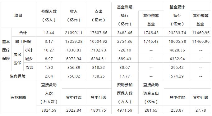 全年職工基本醫(yī)療保險基金收入13259.28億元,增長8.7%;基金支出10504.92億元,增長11.5%。年末累計結(jié)存18605.38億元,其中統(tǒng)籌基金累計結(jié)存11460.96億元。