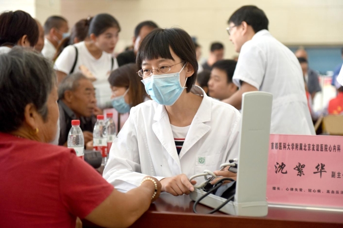 9月7日上午,在臨泉縣人民醫(yī)院大廳舉辦的藥師、醫(yī)師公眾咨詢活動(dòng)中,來自中國醫(yī)學(xué)科學(xué)院腫瘤醫(yī)院藥劑科、綜合科,中日友好醫(yī)院呼吸與危重癥醫(yī)學(xué)科,北京大學(xué)人民醫(yī)院藥劑科,首都醫(yī)科大學(xué)附屬北京安貞醫(yī)院藥劑科、附屬北京友誼醫(yī)院心內(nèi)科的6位專家,為當(dāng)?shù)厝罕娺M(jìn)行現(xiàn)場義診,并積極宣傳和普及健康素養(yǎng)基本知識(shí)與技能,提升當(dāng)?shù)厝罕姷慕】邓仞B(yǎng)。