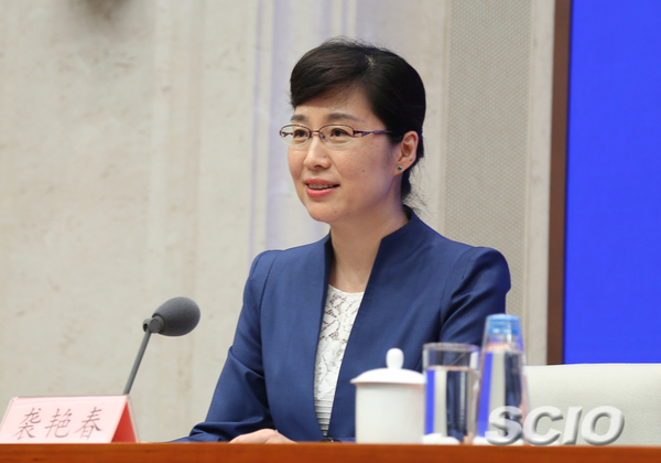 國新辦新聞局副局長、新聞發(fā)言人襲艷春(張馨 攝)