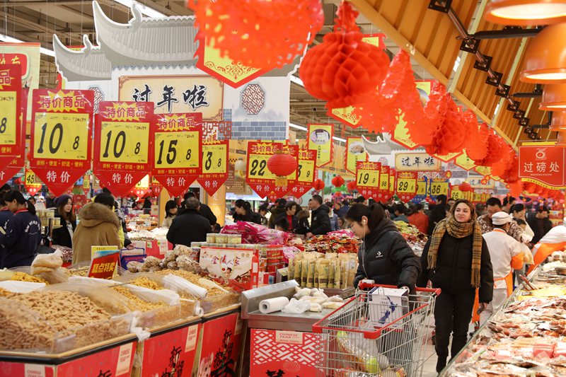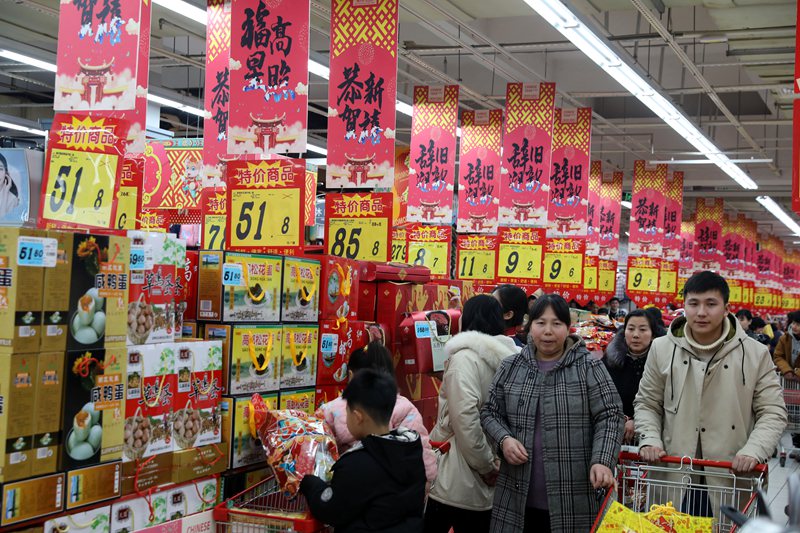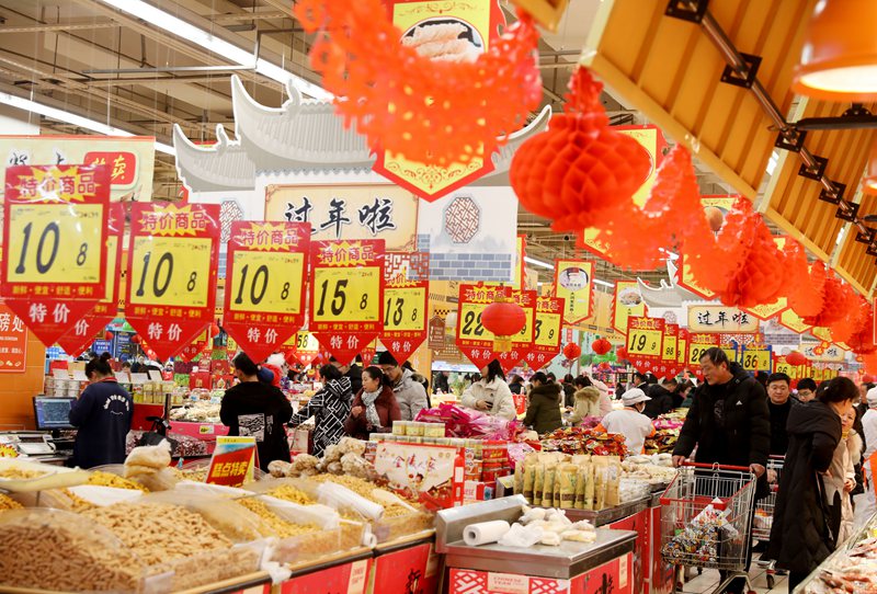 隨著春節(jié)的臨近,安徽省淮北市各大市場(chǎng)、商超積極組織貨源,加大供應(yīng),在保障商品供應(yīng)充足。(李鑫 攝)
