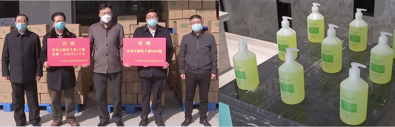 江蘇逸潔生物科技股份有限公司捐贈(zèng)4萬瓶防疫定制洗手液