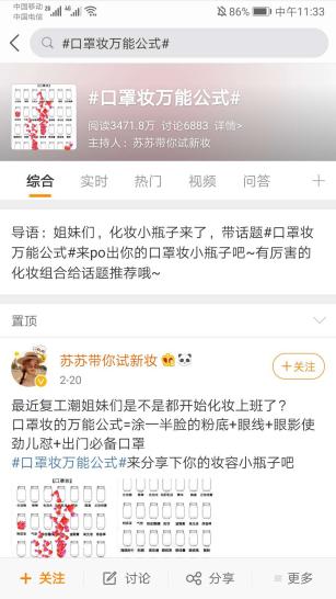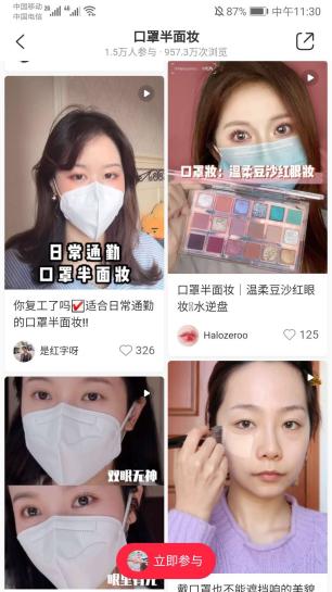 隨著復(fù)工的推進,口罩成為改變消費行為的關(guān)鍵要素。重返社交場、展示自我的內(nèi)在渴望引起“報復(fù)性擼妝”行為風(fēng)潮。針對如何做到口罩遮面不遮美麗、對抗脫妝等實際問題,“口罩妝”教程應(yīng)運而生,成為社交媒體上的新熱點。“口罩妝萬能公式”、“口罩妝等級表”等相關(guān)話題陸續(xù)登上過新浪微博熱搜,小紅書“口罩妝”主題筆記超2萬篇。