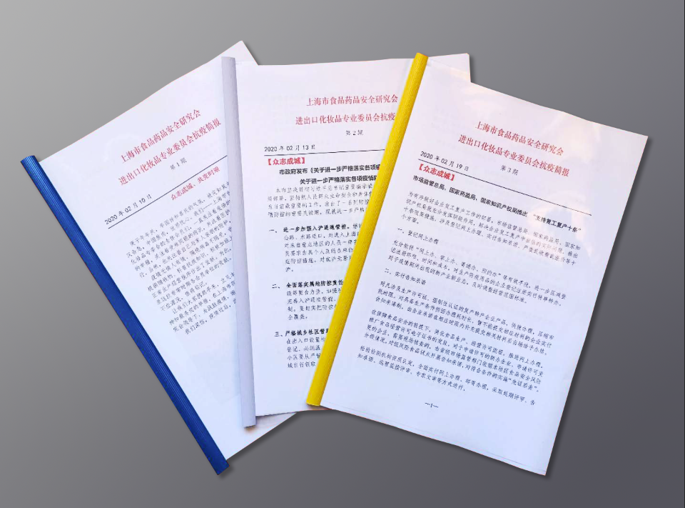 “讓我們大家攜起手來,立足本職,講求科學(xué),共克時(shí)艱,用最專業(yè)的精神和最務(wù)實(shí)的舉措,在上海市藥品監(jiān)督管理局和上海市食品藥品安全研究會(huì)領(lǐng)導(dǎo)下,為戰(zhàn)勝疫情,繼續(xù)貢獻(xiàn)自己應(yīng)有的力量。”在2月10日的第一期《抗疫簡報(bào)》中,上海市食品藥品安全研究會(huì)進(jìn)出口化妝品專委會(huì)(以下簡稱進(jìn)出口化妝品專委會(huì))發(fā)出了這樣的集結(jié)令。