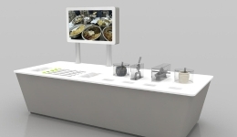 展項由顯示屏、多媒體系統(tǒng)、5種中藥藥劑模型、5組炮制工藝操作裝置、四種中藥制藥工具實物及展臺構成。