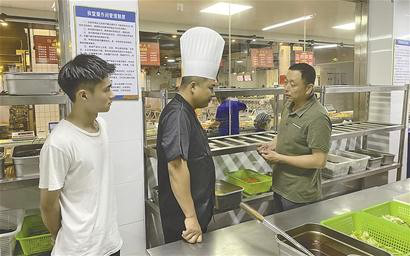 圖為監(jiān)管人員檢查學(xué)校食堂。