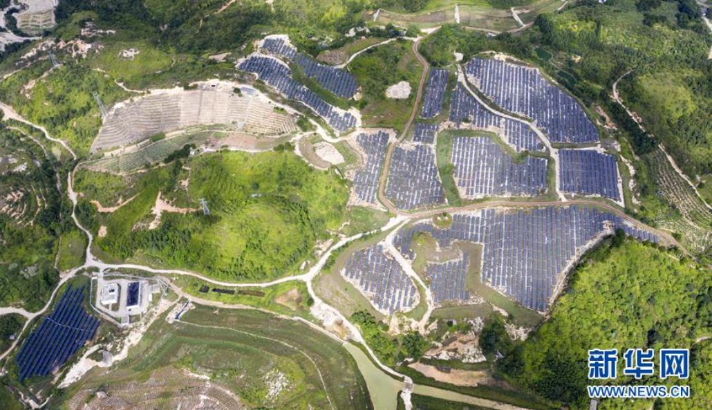 這是位于江西省尋烏縣文峰鄉(xiāng)上甲村附近的生態(tài)修復(fù)區(qū)。從前這里是大面積的廢棄稀土礦山,目前除了恢復(fù)植被外,還成為了當?shù)氐墓夥a(chǎn)業(yè)基地(7月19日攝,無人機照片)。 ?新華社記者 彭昭之 攝