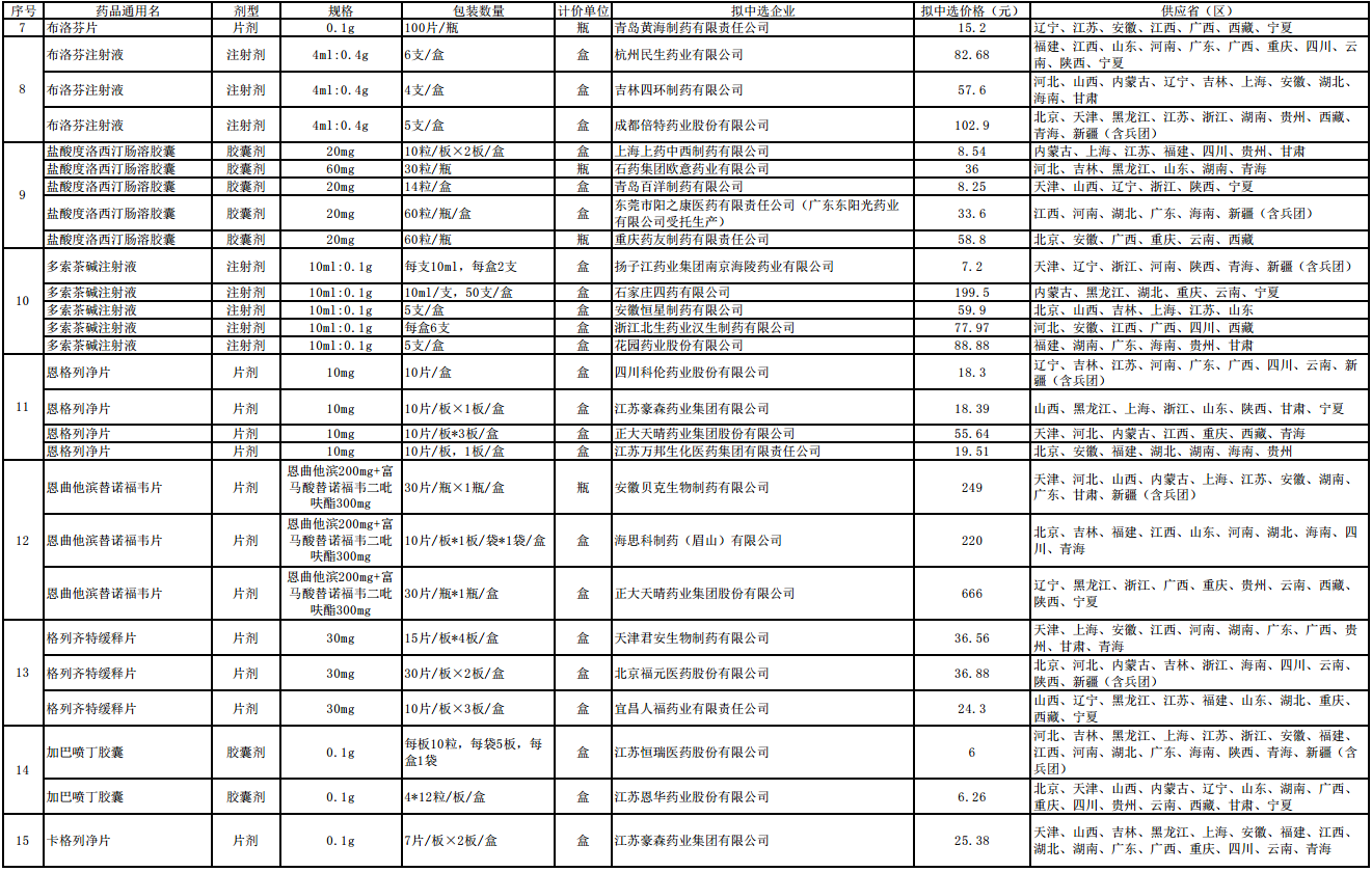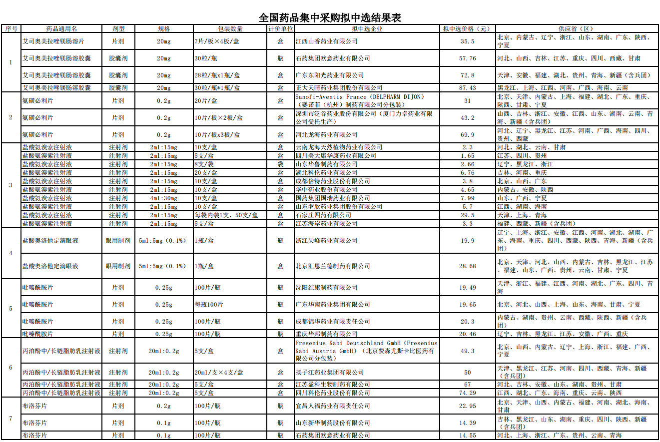 據(jù)悉,共有152家企業(yè)參加本次集采,產(chǎn)生擬中選企業(yè)118家,企業(yè)擬中選比例提高至71%,擬中選產(chǎn)品158個,包括5家外資企業(yè)的5個產(chǎn)品,涉及德國、法國、印度和日本跨國藥企。擬中選產(chǎn)品中,上市公司、外資企業(yè)、百強企業(yè)等企業(yè)的產(chǎn)品占62%,同時也有氨磺必利片、丙泊酚中/長鏈脂肪乳注射液等2個原研藥品,將高質(zhì)量地滿足患者的用藥需求。
