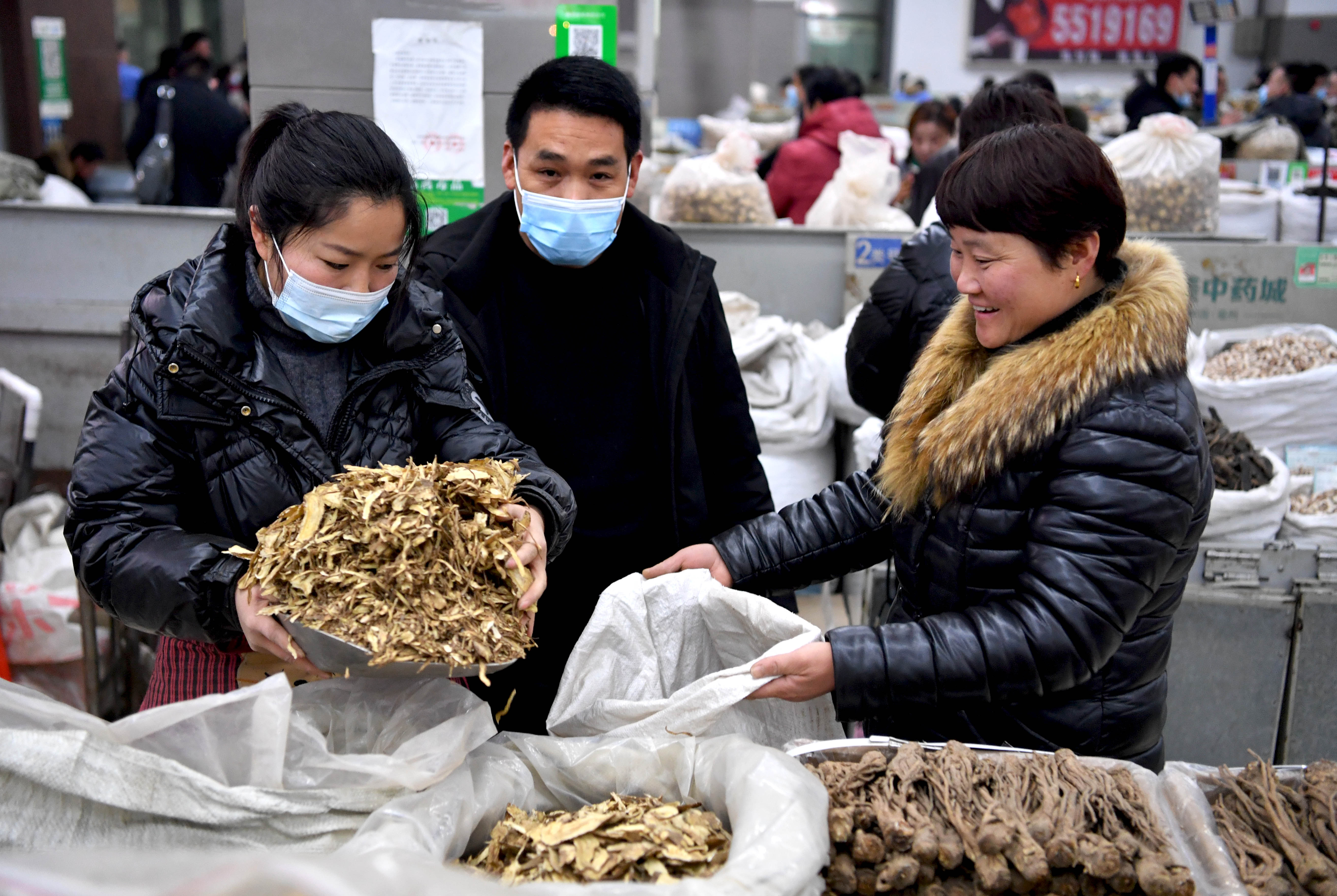 早春時節(jié),安徽省亳州中藥材專業(yè)市場交易活躍,前來采購藥材的藥商絡(luò)繹不絕。(劉勤利 攝)