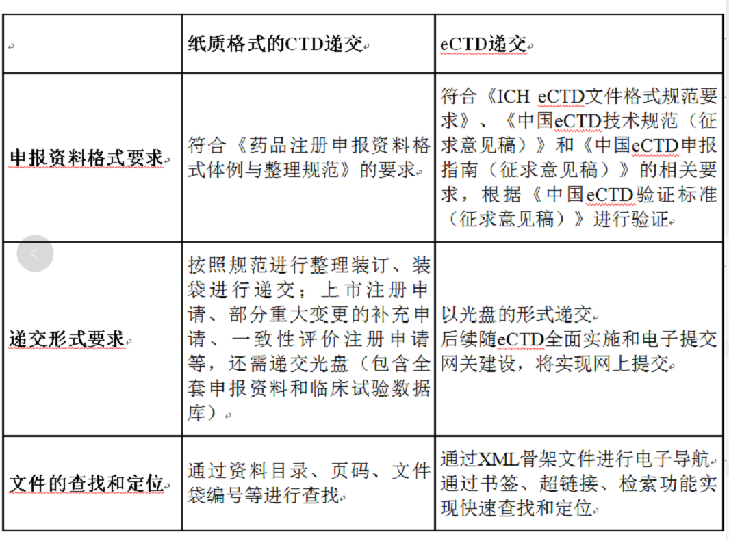 中國紙質(zhì)遞交和eCTD遞交的比較