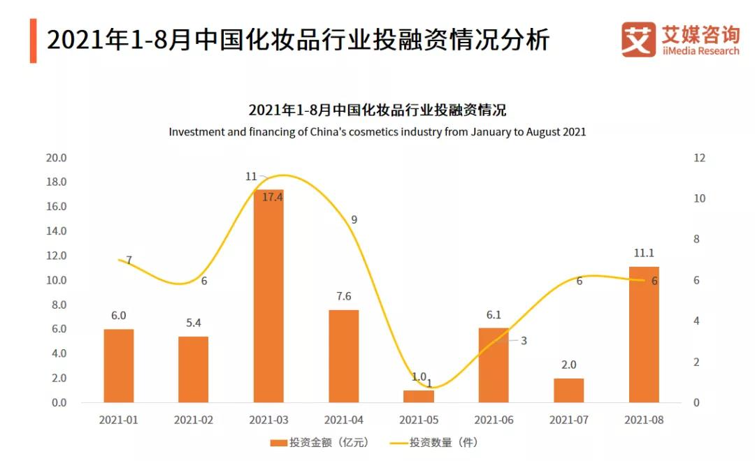 2021年1-8月中國(guó)化妝品行業(yè)投融資情況分析
