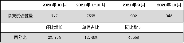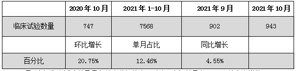 表1:2021年10月臨床申報(bào)新增整體情況