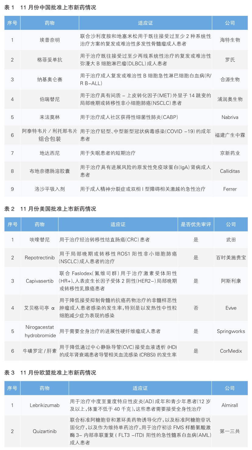2023年11月份中美歐批準(zhǔn)上市新藥盤點(diǎn)