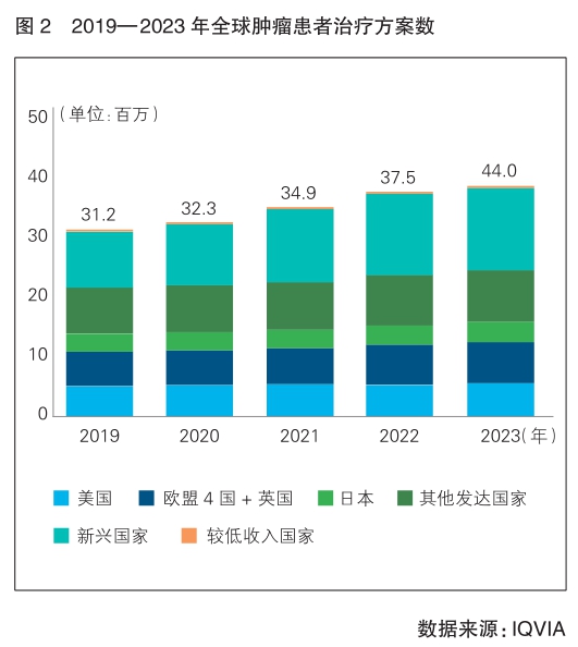 在過去五年中,新興市場和低收入市場的癌癥治療方案數量增長最快,年均復合增長率分別為12%和10%。這反映出這些地區(qū)抗癌藥物的使用范圍有所擴大。