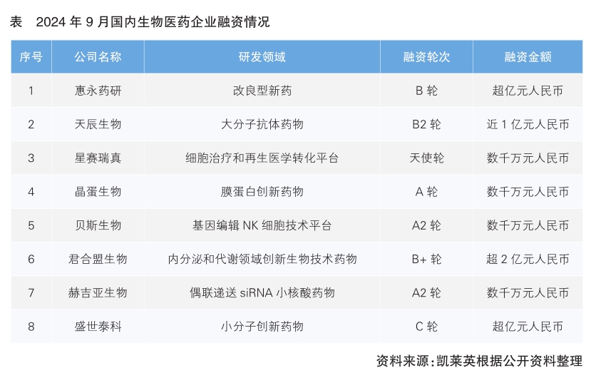 2024年9月份8家國(guó)內(nèi)生物醫(yī)藥企業(yè)完成新一輪融資