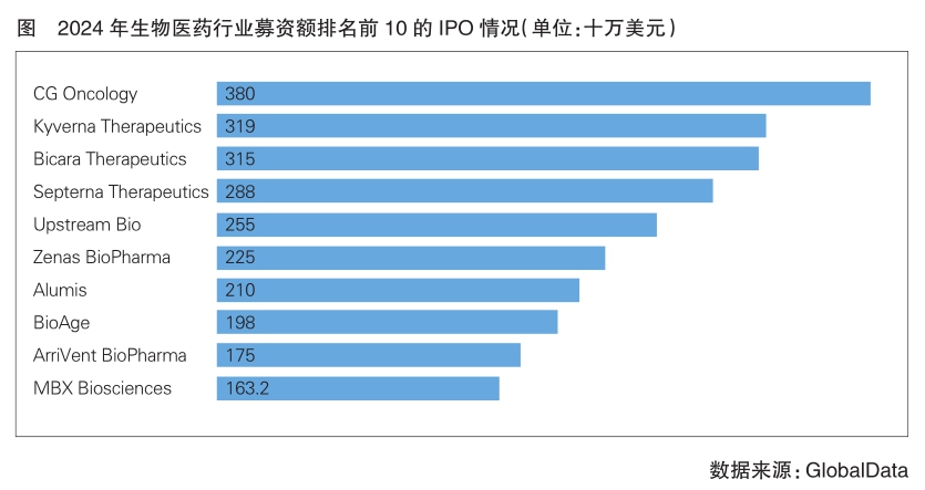 2024年,醫(yī)藥市場逐步回暖,全球生物醫(yī)藥領(lǐng)域共有54起成功的首次公開募股(IPO),融資額突破53億美元,其中腫瘤治療領(lǐng)域是熱點(diǎn)。盡管IPO節(jié)奏有所放緩,但生物技術(shù)企業(yè)IPO仍取得顯著進(jìn)展。