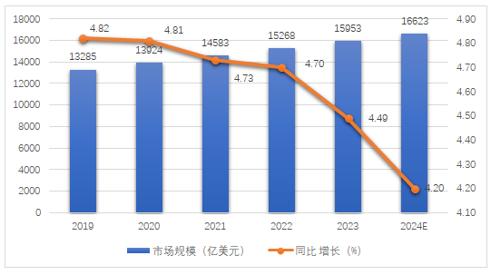圖3 2019-2024年全球醫(yī)藥市場規(guī)模