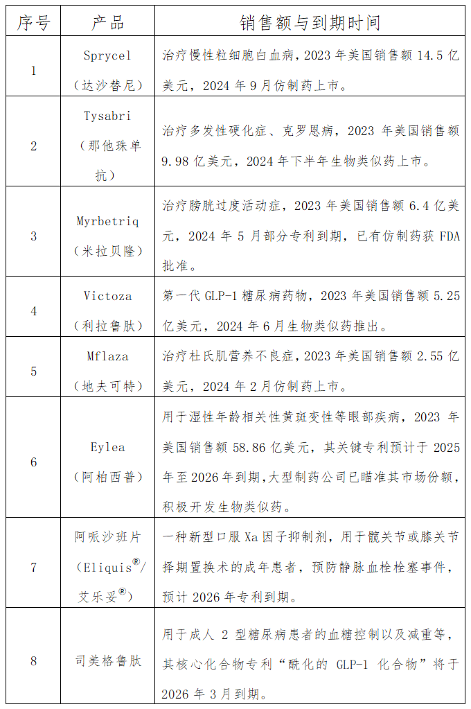 表1 2022-2026年部分重要藥品銷售和專利到期情況
