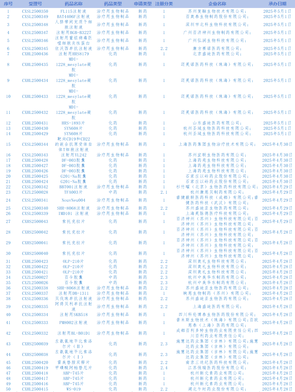 2.CDE承辦受理50個(gè)新藥上市申請(qǐng),包括FL115注射液等。