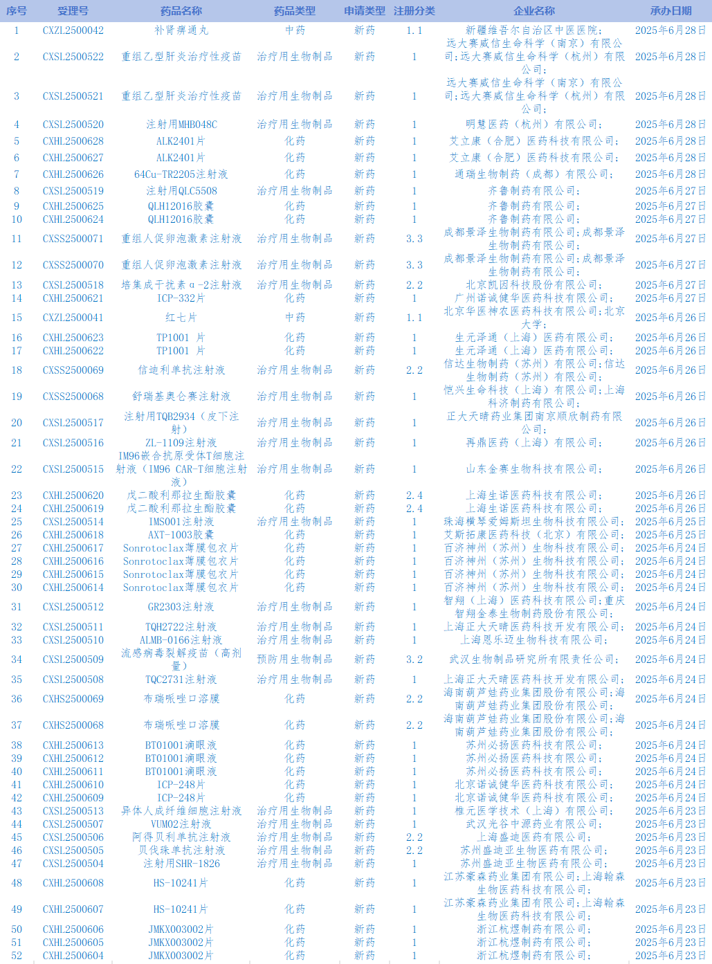 2.CDE承辦受理52個新藥上市申請,包括補腎痹通丸等。