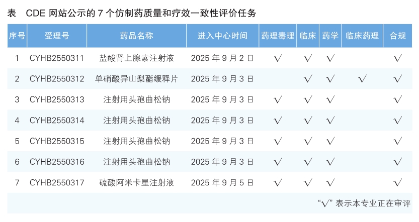 6.CDE網(wǎng)站公示7個仿制藥質(zhì)量和療效一致性評價任務(wù)(詳見表),涉及鹽酸腎上腺素注射液等品種。