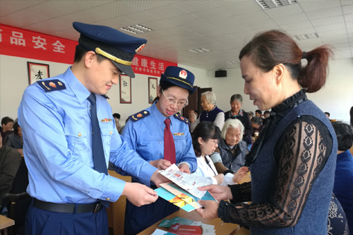 11月1日,浙江省象山縣市場監(jiān)管局在大徐鎮(zhèn)大徐村文化禮堂組織開展主題為“安全用藥,共享健康”的安全用藥月專題活動。圖為執(zhí)法人員在向群眾發(fā)放藥品安全宣傳資料。鄭攀 攝