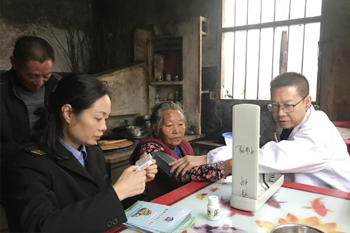 近日,福建省寧德市柘榮縣市場監(jiān)管局將安全用藥宣傳與精準扶貧相結合,開展安全用藥月宣傳活動。該局邀請簽約醫(yī)生進村深入貧困戶為群眾義診,并在村里設置過期藥品回收點,講解安全用藥知識,提升群眾安全用藥意識。李文娟  攝