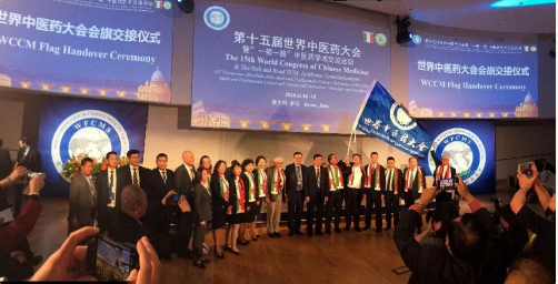 匈牙利中醫(yī)藥團隊在羅馬大會上隆重接下第16屆世界中醫(yī)藥大會會旗