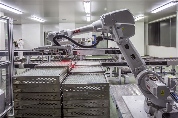 東阿阿膠機(jī)器人上瓶生產(chǎn)線