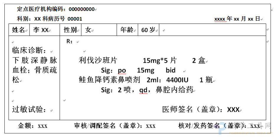 處方案例:女性,60歲,患下肢深靜脈血栓、骨質(zhì)疏松癥