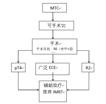 甲狀腺癌的治療、隨訪過(guò)程中應(yīng)以外科為主導(dǎo)。根據(jù)患者不同病情與核醫(yī)學(xué)科、內(nèi)分泌科、放療科、腫瘤內(nèi)科等共同協(xié)商制訂個(gè)體化的綜合治療方案。