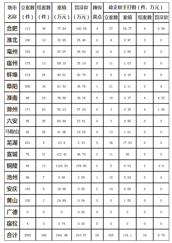 安徽2019年元旦春節(jié)期間打假專項行動第一次“統(tǒng)一攻堅行動周”期間共立案3005件