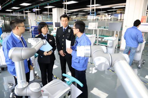 圖為監(jiān)管人員在我國自主研發(fā)的世界首臺骨科通用手術(shù)機器人“天璣”的生產(chǎn)企業(yè)——北京天智航醫(yī)療科技股份有限公司進行檢查。記者 王宣淞 攝