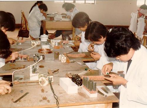 圖為改革開放初期,蘇州一家醫(yī)療器械生產(chǎn)企業(yè)工作場景。
